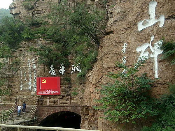 山碑在青年洞的前面,是《山碑》摄制组于1990年请前国家主席李先念题写的片名。